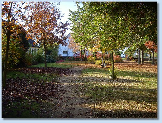 "hinter" dem Festplatz. Er wurde 1837 angelegt von Pfarrer Schmidt und Bürgermeister Korb. Hier wurden Beerdigungen bis in die 20er Jahre vorgenommen. Unter Bürgermeister Böhn wurden dann in den 50er Jahren die Gräber entfernt und der neue Friedhof der sich ebenfalls an der Friedhofstraße am Ortsausgang Richtung Klein Krotzenburg befindet, in Betrieb genommen. ![]() ![]() Herbstbilder 2007 letzte Änderung: 02.07.2004/11.11.2007